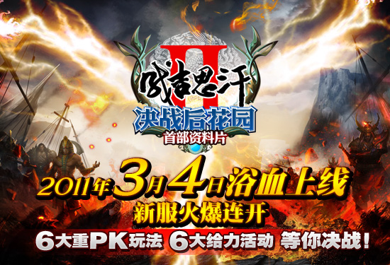 与此同时,《成2:决战后花园》首部资料片“王者座驾助阵终极战场”、“昔日战友重聚巅峰战场”等活动也已经于3月4日全面启动,助阵王者战神,赢得终极荣誉! 《成2:决战后花园》首部资料片今日浴血上线 享受人类历史上最惨烈的PK乐趣,《成吉思汗2》立足千种PK玩法以及庞大版图,2010年9月内测之初即创下了62万人同时在线,问鼎年度票房冠军。如今,历经180天的痴心等待,研发团队蓄力半年之久,继“骑乘炼化”、“跨服战场”等创新玩法之后,《成2:决战后花园》再推PVP战场等六大全新重PK玩法,将广大玩家对PK的热情一次性释放,再掀PK网游风暴! 《成2:决战后花园》首部资料片呼唤昔日战友