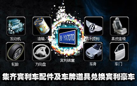 参加线上任务即可获得宾利车配件及车牌道具 2011年3月1日至3月14日期间,在《成吉思汗2:决战后花园》首部资料片的全新玩法地图中,通过参加指定活动任务集齐8个宾利豪车配件以及汽车牌照锦囊,即可得到宾利豪车的7天或1000公里免费使用权!这不仅关乎梦想,关乎结果,更是男人间的较量,巅峰PK,实力决定荣耀!活动详情:http://tg.70yx.com/han2/zt/binli/ 有玩家表示,自己玩《成2:决战后花园》不仅是为了体验酣畅的PK玩法,还有一个更重要目的是——赢取百万宾利豪车,得史上最奢侈战利品!“不少玩家都和我是一样的,宾利车可是每个男人的终极梦想”。 集齐宾利车配件及车牌道具兑换宾利豪车