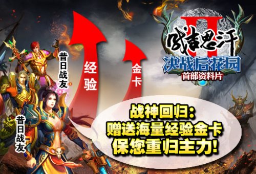 距离《成吉思汗2》内测创下62万人同时在线的成绩已经过去了半年之久,制作团队精心打磨的《成2:决战后花园》首部资料片,一次性释放了玩家180天等待与渴望,百万量级的玩家疯狂涌入,导致《成2:决战后花园》网通、电信全线告急! 昔日战友重聚《成2:决战后花园》巅峰战场 据悉,目前除了广大新玩家入驻以外,数以万计的老玩家也在“昔日战友重聚巅峰战场”活动的带动下,重新回归《成吉思汗2》线上,与以前的兄弟姐妹们一起重返沙场。活动赠予老玩家大量经验奖励和道具军备,确保老玩家第一时间重归战场主力,挑战全新PVP战场。 《成2:决战后花园》1188元新手卡 【打造终极王者战神 玩最火爆PK网游】 第一步:注册《成2:决战后花园》帐号:http://han2.70yx.com/zt/xinwen1/index.html,即可领取价值1188元“百变战甲大礼包”,极品装备、精美时装免费赠送! 第二步:下载《成2:决战后花园》客户端:http://tg.70yx.com/han2/index/download.shtml,光速下载只需15分钟! 第三步:登录《成2:决战后花园》任意一个服务器,选择12大欧亚职业之一展开冒险旅程。穿冥王神装,骑史诗坐骑,打刺激跨服战,拉帮结伙决战PVP战场! |